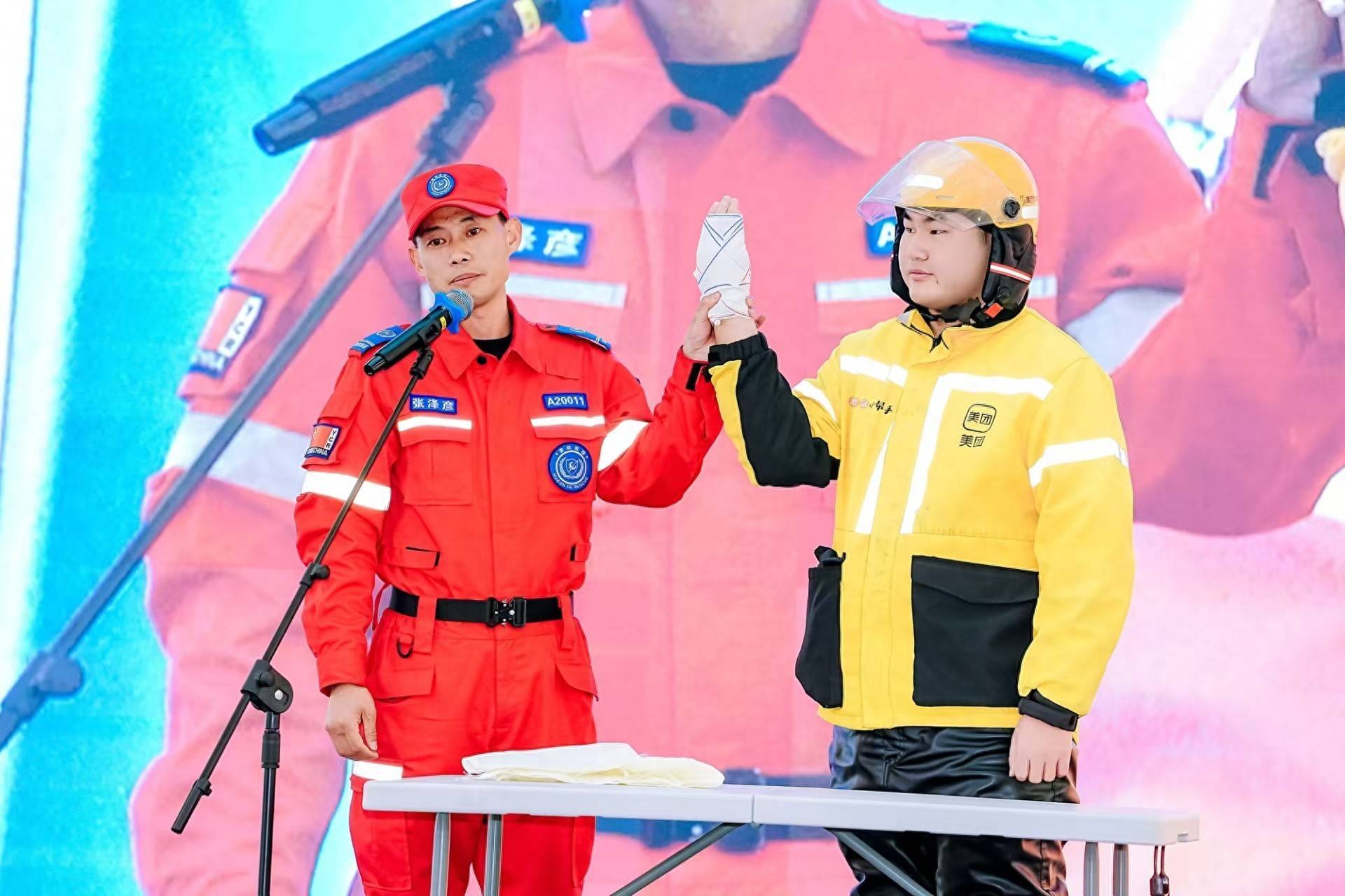 实训现场还举行了“应急第一响应人”颁奖仪式。拥有3 年外卖配送经验的美团骑手夏欣雨,以实际行动践行应急担当,被授予“应急第一响应人”荣誉证书,成为现场骑手争相学习的榜样。这份荣誉不仅是对个体责任担当的肯定,更激发了全体骑手践行安全责任、助力应急救援的内生动力。